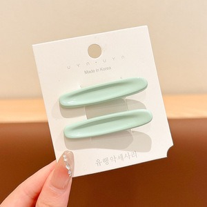 4#彩椭圆碎发夹-绿色一对约5.2cm