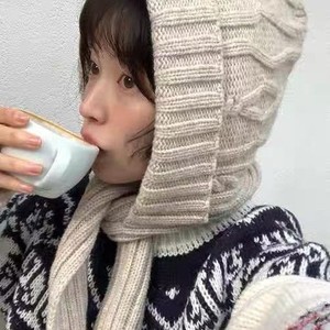 2025新款韩系针织巴拉克拉法帽女秋冬大头围显脸小保暖护耳毛线帽