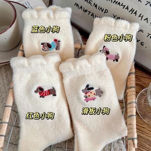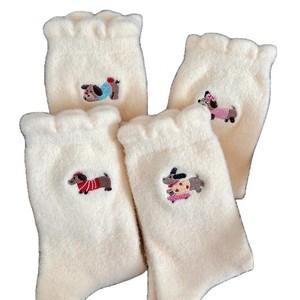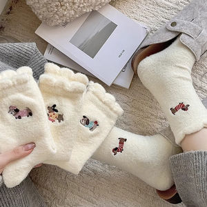 秋冬新款加厚可爱袜子白色女保暖袜中筒袜日系卡通毛绒自发热长袜