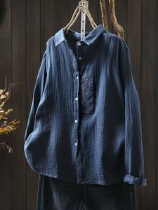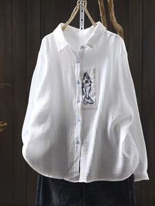 2025秋季新款 双层棉纱小鱼刺绣文艺简约百搭衬衫25616