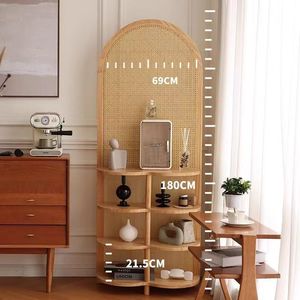 复古藤编屏风隔断客厅入户玄关遮挡可移动实木座屏侘寂风置物花架