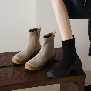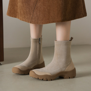 牛皮版~2025年新款复古圆头厚底短筒靴女款气质百搭时装靴马丁靴