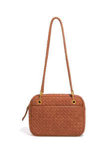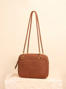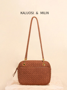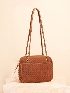 新款麂皮绒编织相机包女轻奢高级手工编织包单肩斜挎包托特包方包