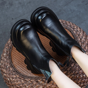 2025秋冬季新款真皮女靴发泡底轻便厚底加绒加棉短靴头层牛皮靴子