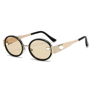 2025新款金属墨镜椭圆小框太阳镜男女ins风夜店蹦迪嘻哈眼镜带标