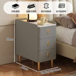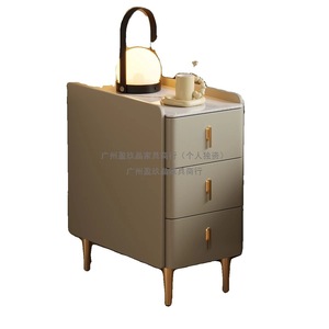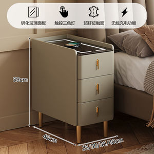 实木超窄智能小型床头柜轻奢现代简约卧室家用无线充电岩板床边柜