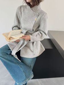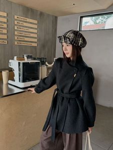2025秋冬新中款系带立领双面羊绒大衣女高级感显瘦复古羊毛呢外套