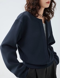 ELLE藏青色假两件卫衣女2025秋季新款洋气宽松拼接设计感上衣外套