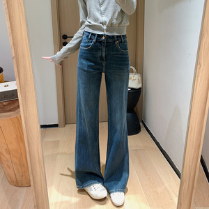建模裤!力荐双版本酵洗手擦猫须微喇裤宽松阔腿牛仔裤女