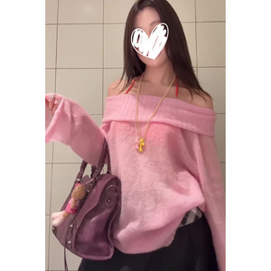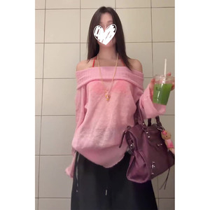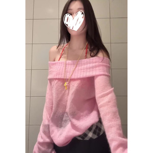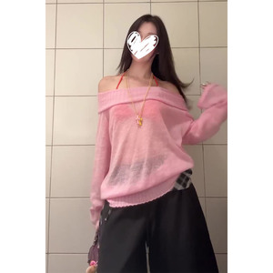 2025秋季新款甜美软糯多巴胺露肩长袖套头针织衫毛衣女小个子上衣