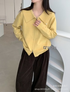 韩版双拉链翻领毛衣开衫女25秋冬新款慵懒风宽松软糯针织外套C148