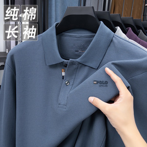 源头工厂男士长袖T恤纯棉POLO衫春秋新款简约带领半袖体桖中年男