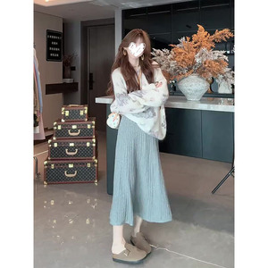 温柔风甜美卡通猫咪印花长袖套头针织毛衣女慵懒软糯宽松上衣穿搭