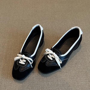 牛皮版~真皮系带运动芭蕾舞鞋女2025新款复古英伦浅口玛丽珍单鞋
