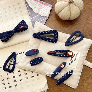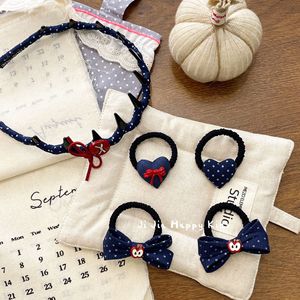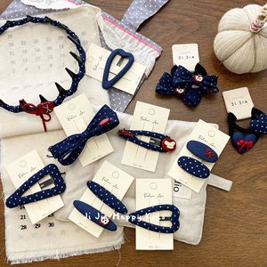 藏青色波点早秋韩系发夹甜美爱心蝴蝶结BB夹百搭高颅顶发箍头饰