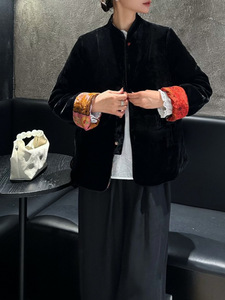高端轻奢气质真丝活性丝绒双面双穿香云纱印花新中式棉衣外套秋冬