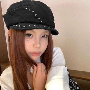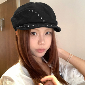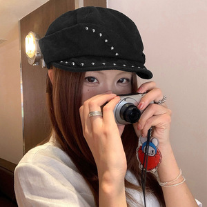 山本风日系铆钉复古做旧不规则设计八角帽春秋显脸小报童帽贝雷帽