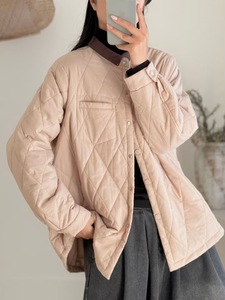 夹棉棉衣 2025冬季新款 复古保暖菱格休闲棉服女文艺拼色立领外套