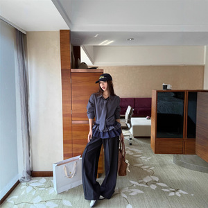 实拍高级感复古格子长袖衬衫女秋季外搭领带荷叶边围裙三件套
