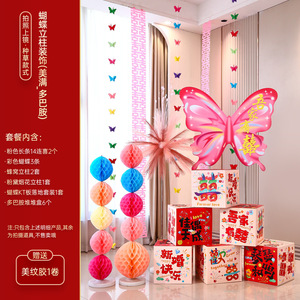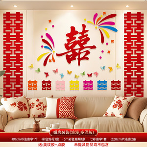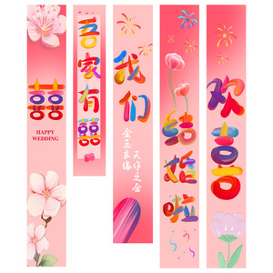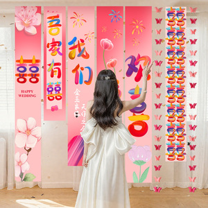 多巴胺喜字长条挂布结婚客厅背景墙装饰婚房布置新娘晨袍拍照道具