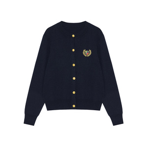 范洛2025秋季新款羊毛针织毛衣开衫学院撞色徽章刺绣金属扣上衣女