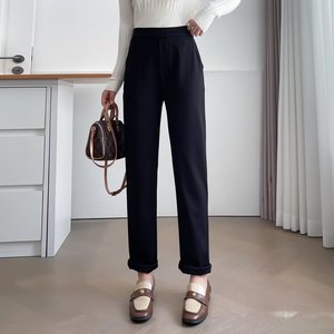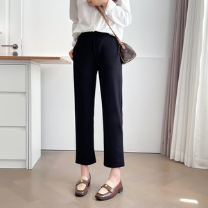 200斤胖妹妹秋季新款简约显瘦西装裤大码女装烟管裤小黑裤8456