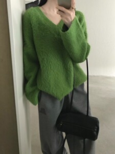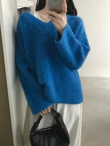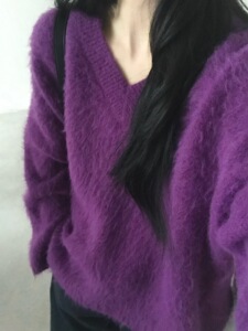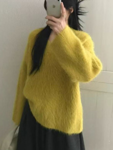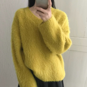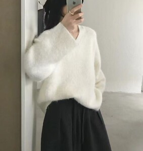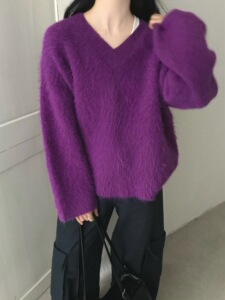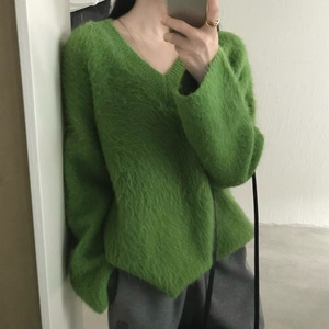 仿浣熊拉毛软糯v领毛衣女2025秋冬洋气宽松慵懒风套头针织衫上衣