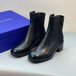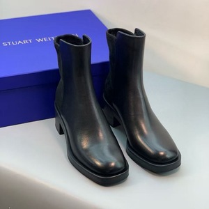 纯原渠道货切尔西短靴真皮时尚烟筒女靴牛皮厚底粗跟方头短靴