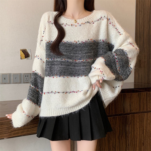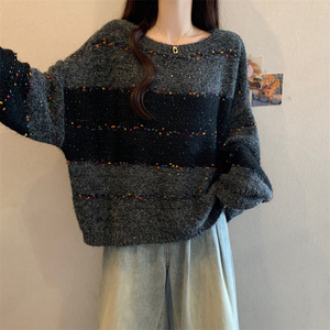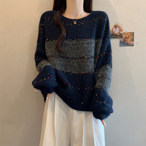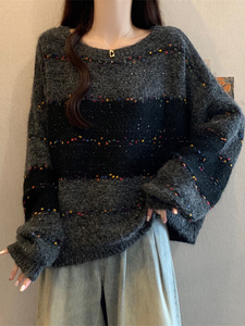 宽松慵懒彩点长袖毛衣针织衫秋季2025新款大码女装胖mm巨好看上衣