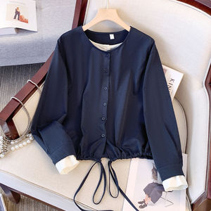 早秋新款独特别致假两件拼接衬衫女小个子百搭抽褶设计感时尚上衣