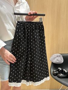 韩版女童秋季新款波点裤女孩时髦双层蕾丝花边休闲裤女宝宝直筒裤