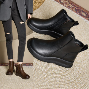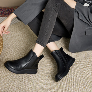 秋冬复古真皮马丁靴女韩版厚底短靴女休闲切尔西鞋靴子一脚蹬女鞋