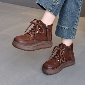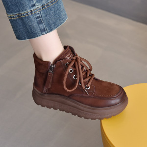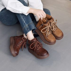 头层牛皮复古马丁靴女2025秋冬新款时尚短靴休闲好搭系带软底单靴