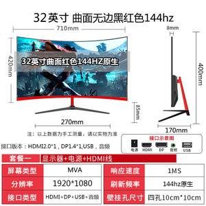 电竞曲面黑色级(黑红可备注)-联名款32寸2K144hz双重配置无边【3】