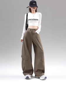 2025秋季新款女装美式弯刀裤百搭显瘦阔腿口袋工装裤子女款A7565