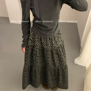秋冬新款2025年磨毛2025年复古半松紧碎花长裙半身裙