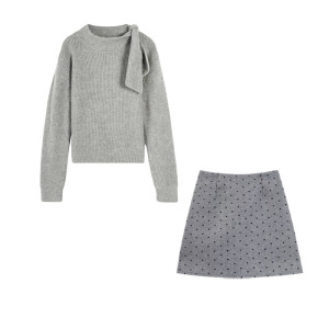 2025新款小香miu系风穿搭连衣裙子女秋冬季灰色内搭套装波点短裙