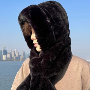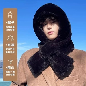 帽子围巾一体秋冬季保暖毛绒加厚仿兔毛护耳帽子男士新款防寒围脖