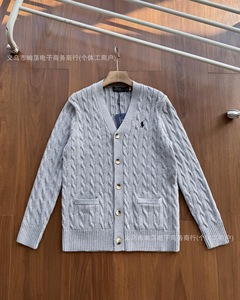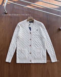 RalphLauren拉夫劳伦四色V领纯色小马刺绣logo麻花针织开衫外套