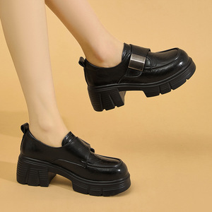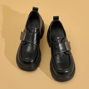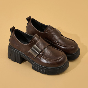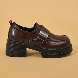 英伦风单鞋一脚蹬女鞋棕色小皮鞋女春秋季厚底乐福鞋粗跟一件代发