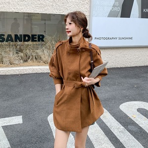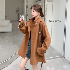 咖色工装风衣外套女秋季2025新款美拉德穿搭短款小个子麂皮绒大衣