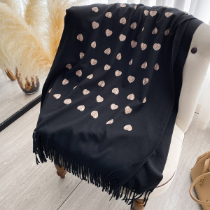 围巾披肩仿羊绒女秋冬中长2025新款流苏民族风刺绣爱心氛围感保暖