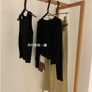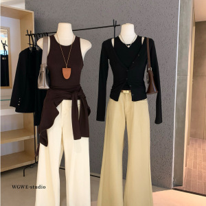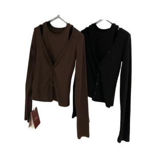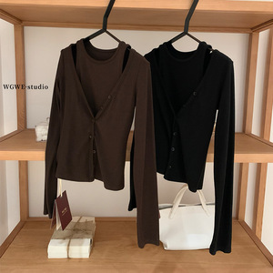 WGWE7441修身显瘦背心开衫两件套设计感长袖T恤打底衫上衣