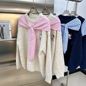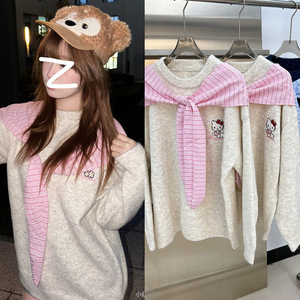 设计感学院风披肩套头毛衣女美式秋百搭圆领宽松韩系甜美针织上衣