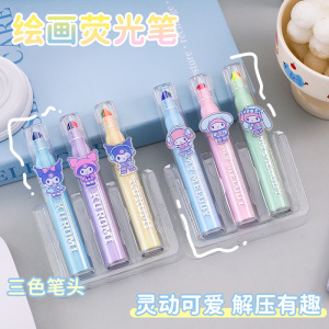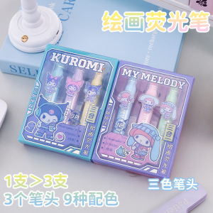 三丽鸥三合一绘画发光笔9色 正版卡通库洛米记号笔划重点标记彩笔