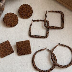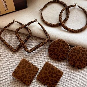 复古植绒几何豹纹耳钉女款轻奢高级感耳环耳饰品气质耳圈耳坠配饰