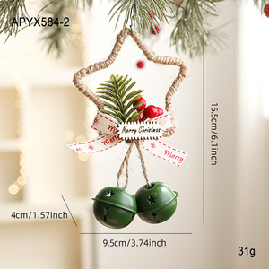 新款圣诞节五角星铃铛挂件墙挂门挂圣诞树挂饰圣诞蝴蝶结铃铛装饰