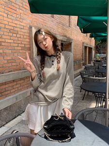 2025经典百搭圆领条纹长袖T恤女秋季设计感小众内搭打底衫上衣新