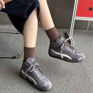 韩版头层牛皮高帮德训鞋女2025秋新款舒适软底时尚百搭休闲运动鞋