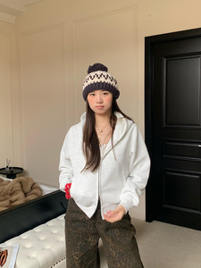 橘子树在哪儿灰色短款连帽卫衣外套女秋季款宽松慵懒风双拉链开衫